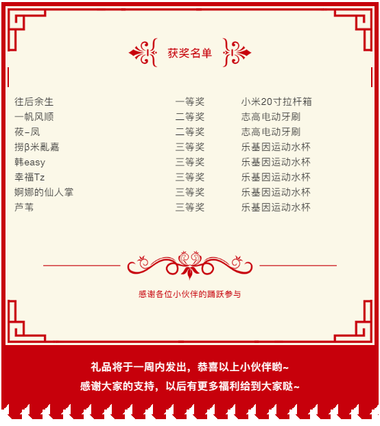 當當當,2019國慶活動的獲獎名單新鮮出爐啦!快來看看有沒有你或者你朋友哦!