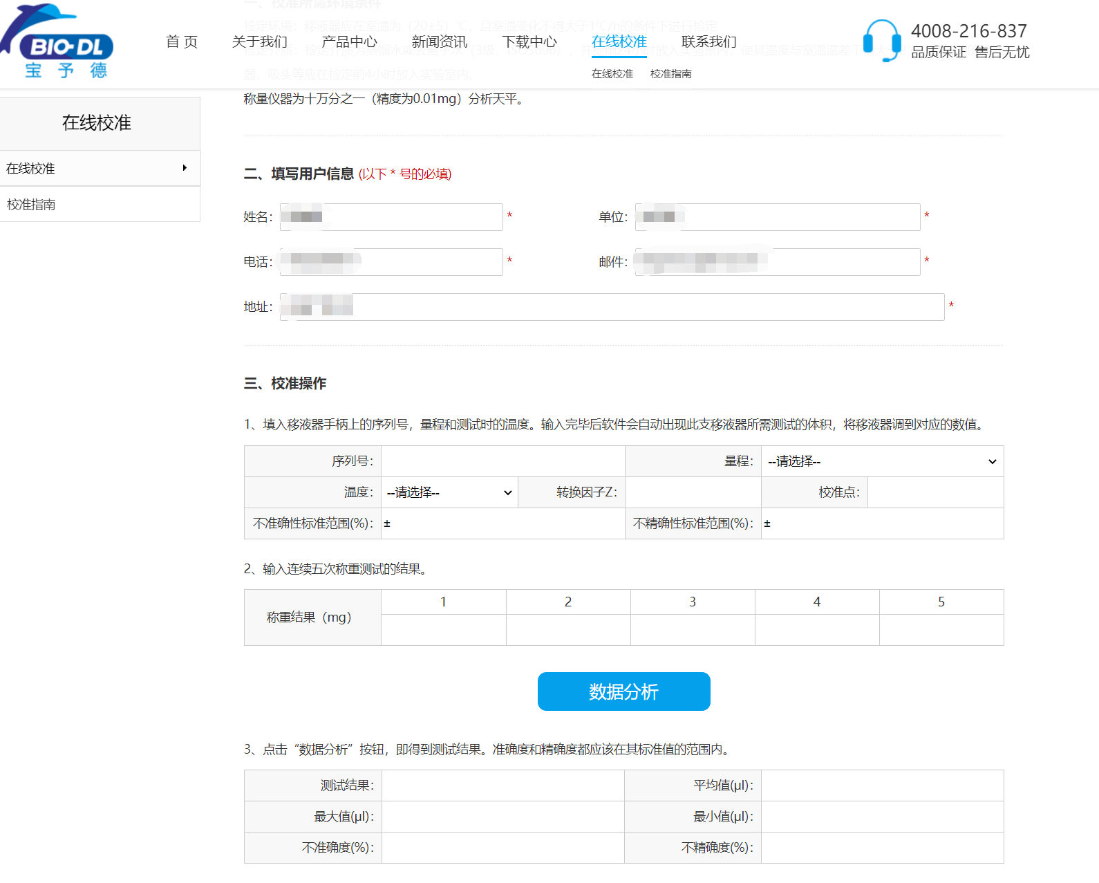 使用寶予德系列移液器的小伙伴們,可以登錄寶予德官方網站進行在線校準(http://www.bio-dl.com/correct.html),根據網站提示操作,輸入相關信息則可以立即檢驗移液器的準確度啦,加上配套的小工具還可以直接校準哦!